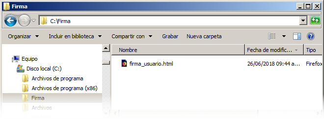 Es posible que el archivo se descargue automáticamente en la carpeta Descargas, debe cortarlo (Ctrl+X) y pegarlo (Ctrl+V) en C:\Firma\.